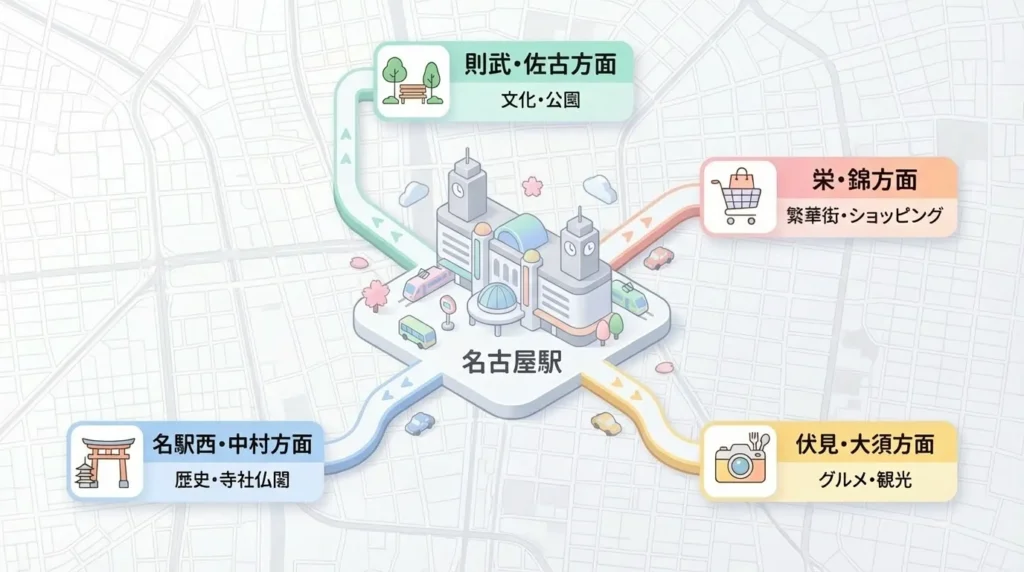 名古屋の距離感や広さが一気に分かりやすくなります。