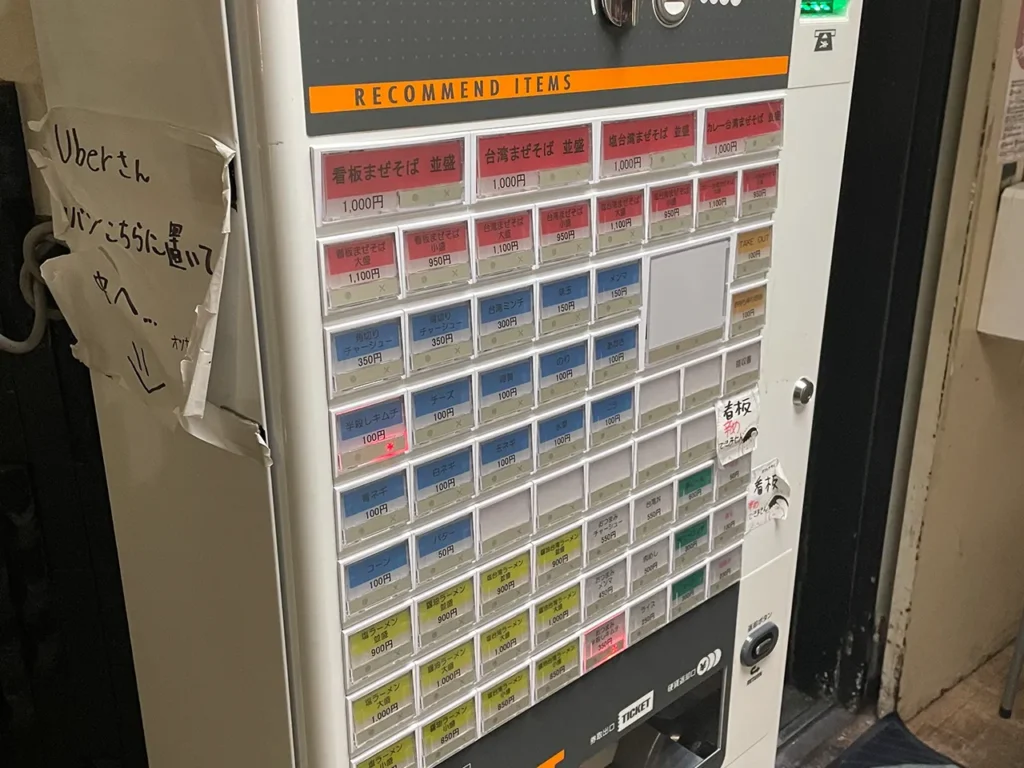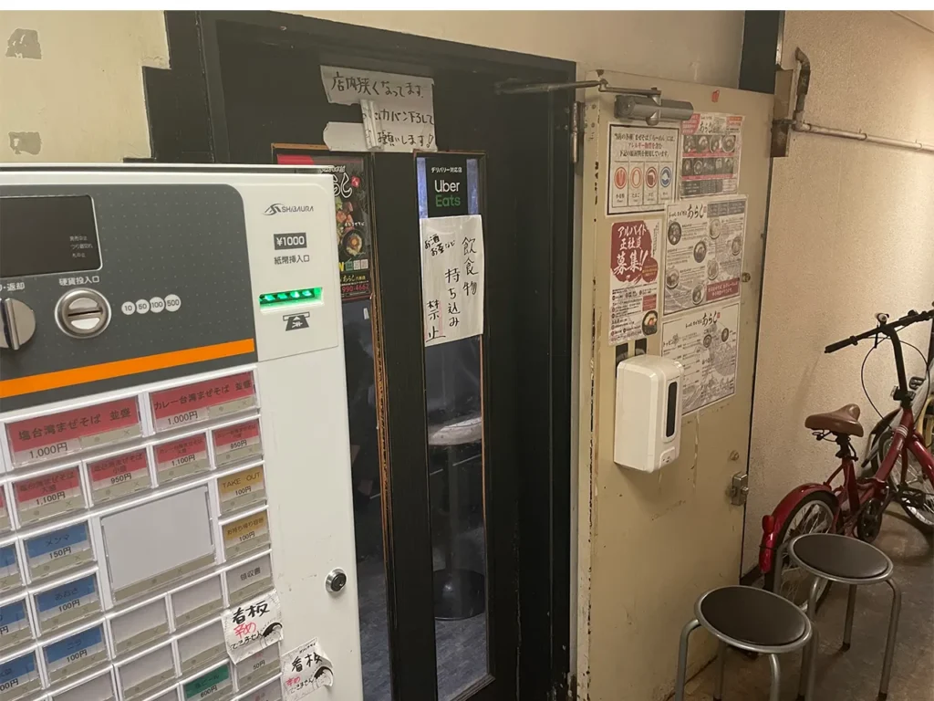 - 店外にある券売機で食券を購入(現金のみ)。混んでいる時は椅子に座って待ちます。